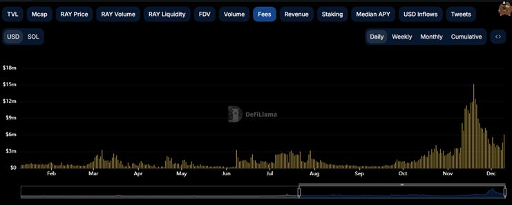 With a TVL/FDV ratio of 0.633, Aerodrome is currently more undervalued than Raydium and more importantly their fee revenue is moving in the right direction!