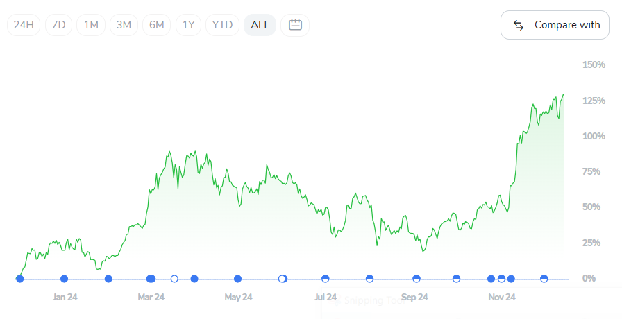News and rumours seem to be driving the price action. The favourable XRP ruling earlier this year and political shifts following Trump’s win, and Gary Gensler’s resignation, have boosted sentiment.