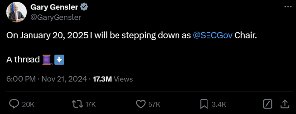 Paul Atkins, the pro-crypto nominee to replace Gensler as SEC Chair, has attracted attention as well. Atkins has a history of supporting blockchain projects and even spoke at the Cardano Summit in 2020. His nomination is fuelling speculation about a friendlier regulatory environment for crypto.